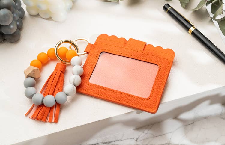 Material and Size: The wristlet keychain is composed of 14 smooth, food-grade, BPA free silicone beads in 15mm and 1 natural wooden bead. This Silicone Beaded Ring diameter is 2.36", equipped with a detachable high-quality leather mini purse which is 4.1"*3.3" with 3 windows, it can carry 6 ID or credit cards together. It is also a car key holder; the large metal buckle ring can hold up your keys very well.