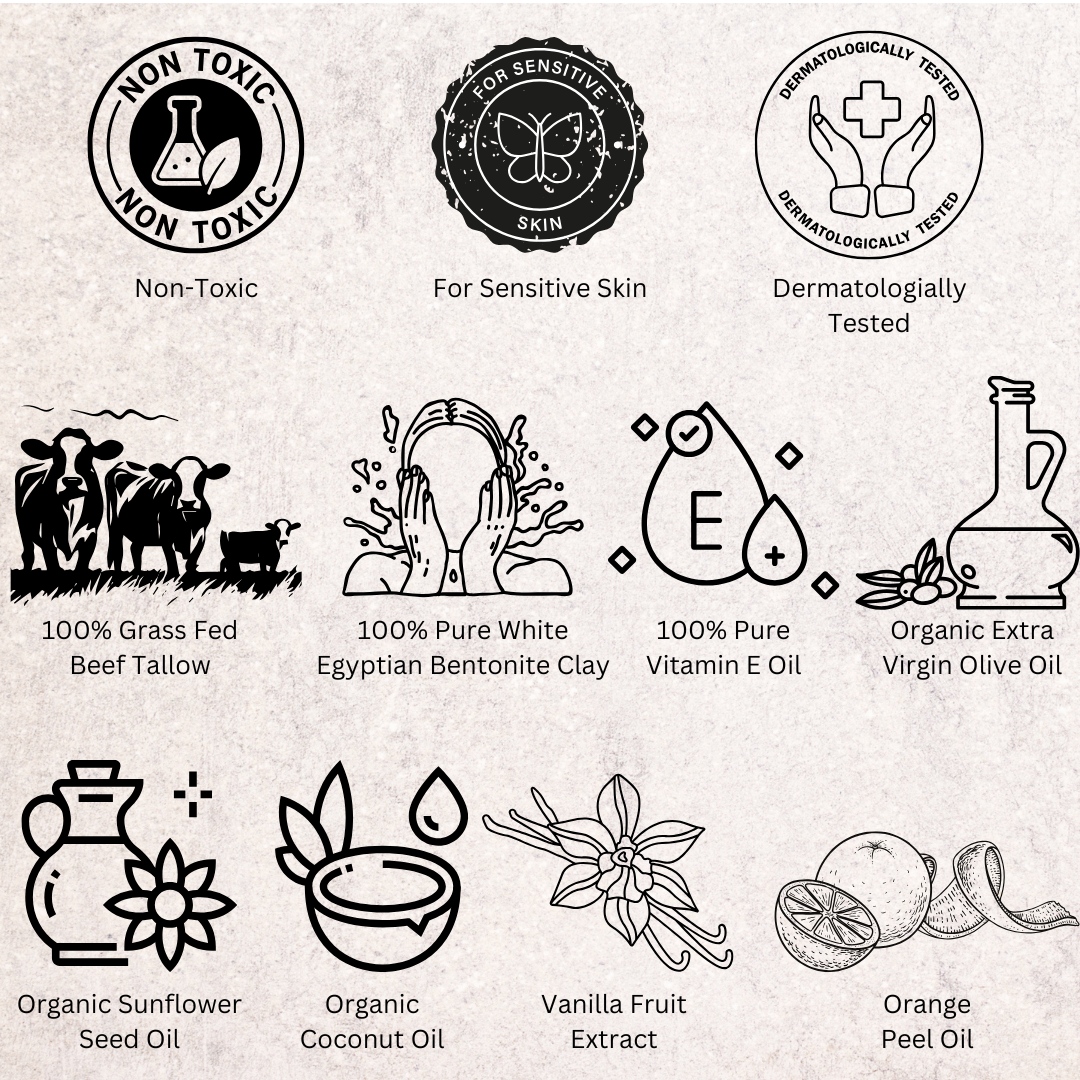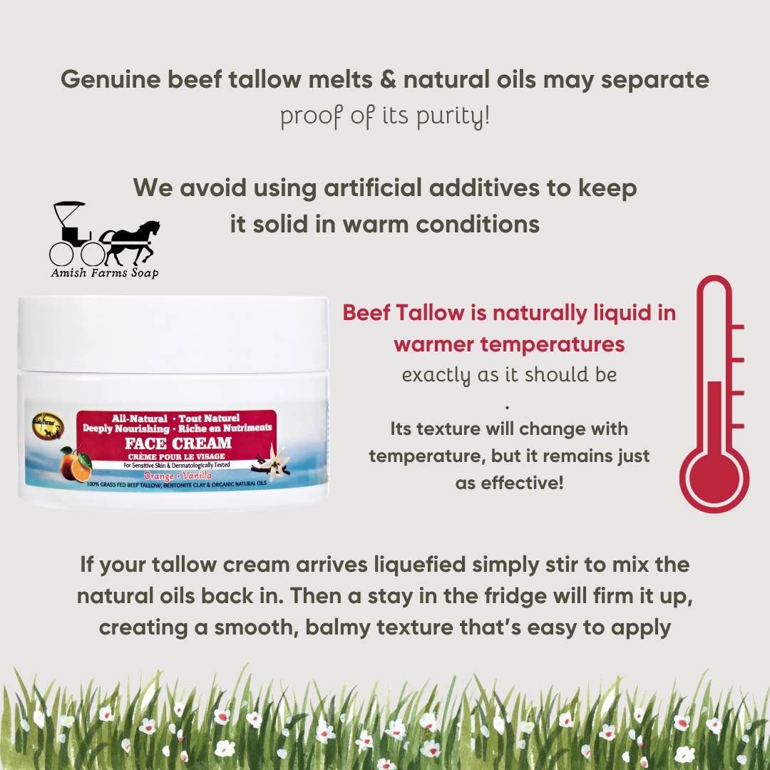 Discover the natural secret to glowing skin with Amish Farms Tallow Face Cream. Crafted with pure, grass-fed beef tallow, this nourishing cream is rich in essential fatty acids and vitamins A, D, E, and K, deeply moisturizing and rejuvenating your skin. Tallow is naturally compatible with your skin, offering a gentle, effective solution for a healthy, radiant complexion.