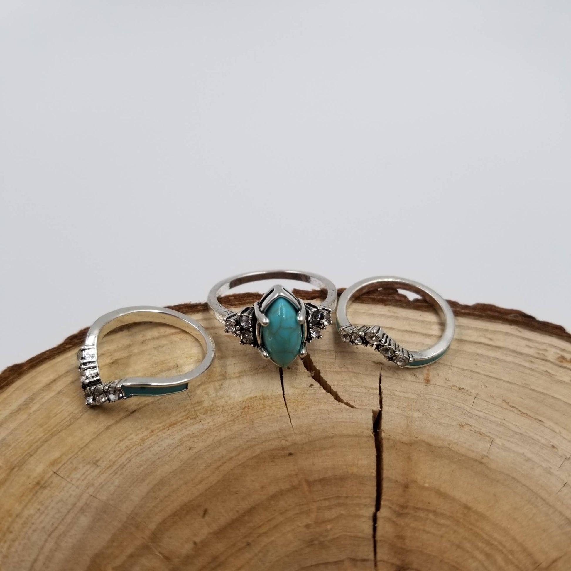 CHAKRA JEWELRY - Silver Vintage Turquoise & Diamond Ring Set Of 3