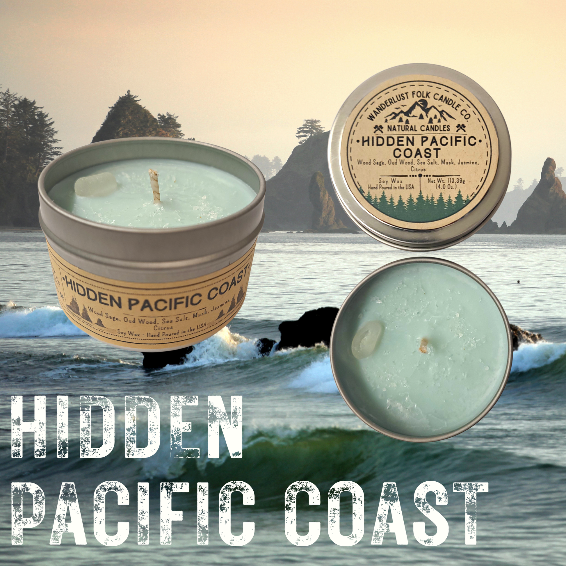 Wanderlust Folk - Hidden Pacific Coast - USA MADE - Soy Wax Candles