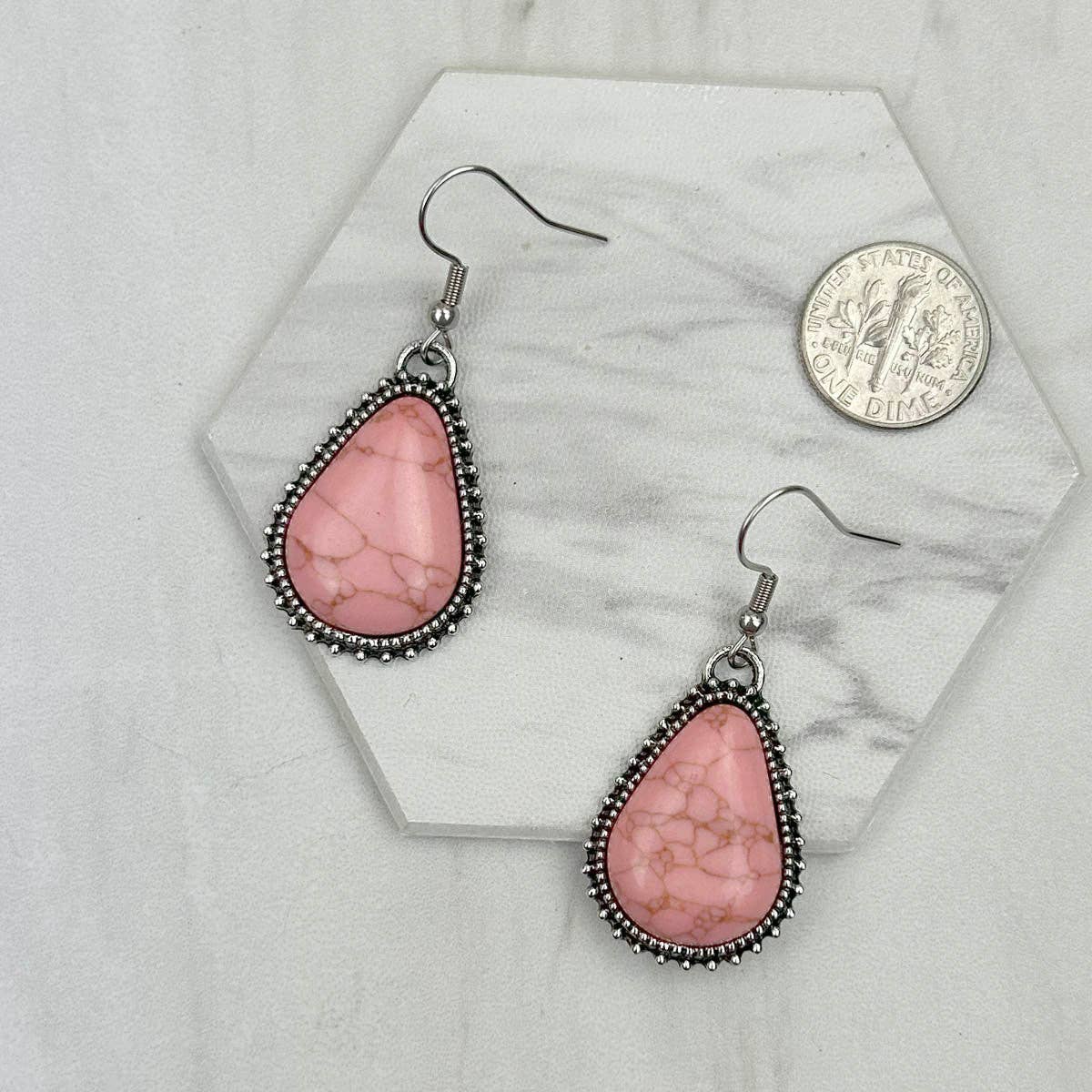 Western Elite Jewelry - ER231217-20 Silver metal with blue turquoise stone beads teardrop Earrings